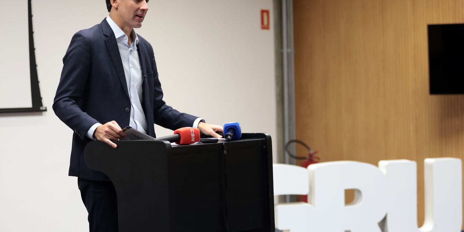Ministro dos Portos e Aeroportos, Silvio Costa Filho, participa da Cerimônia de Lançamento das obras de ampliação da Delegacia Especial da Polícia Federal no aeroporto de Guarulhos. Paulo Pinto/Agência Brasil